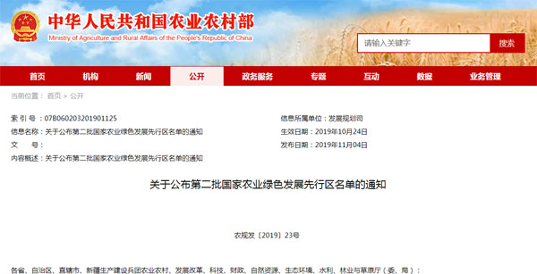 关于公布第二批国家农业绿色发展先行区名单的通知