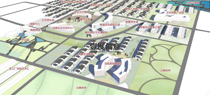 壹度创意结合核心产业与优势资源,确定“智慧农业主题、青少年素质教育主题、生态艺术乡村主题”进而划分五大功能版块,设计了五十余个大项目,近三百个子项目,极大地丰富了汉石桥村的体验内容与规模,创造了更多的盈利点。